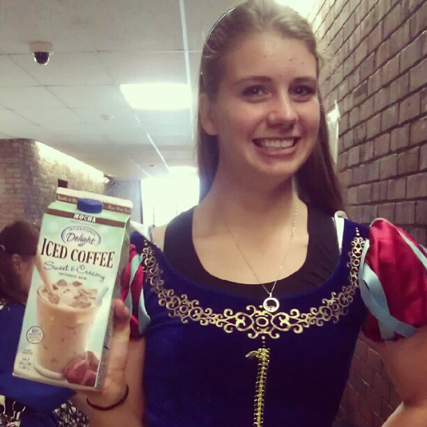 “Sporting Snow White on a TV commercial advertising Iced Coffee. The only way to get through midterms.”