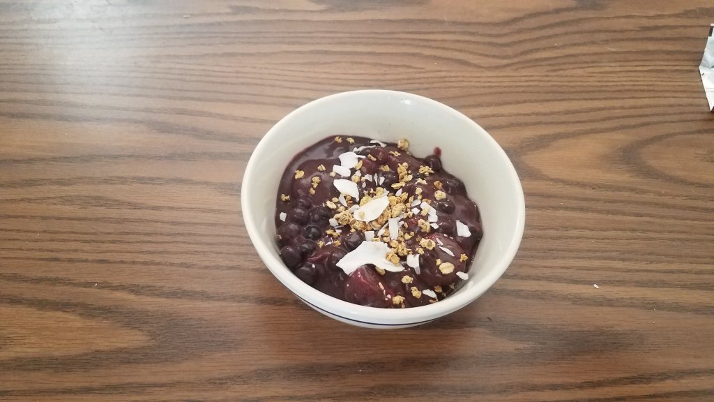 When it comes to taste, the bowl is very basic. It has the açaí base blend with blueberries, bananas, and halved strawberries in the smoothie, all topped with a coconut-granola mix. It isn’t the best açaí bowl I have ever tasted, but it is affordable and I can adjust the toppings and additional ingredients to my liking. By itself it tastes good, but the beauty of it being basic gives me the option to enhance it to my liking and that makes me feel better about my purchase.
