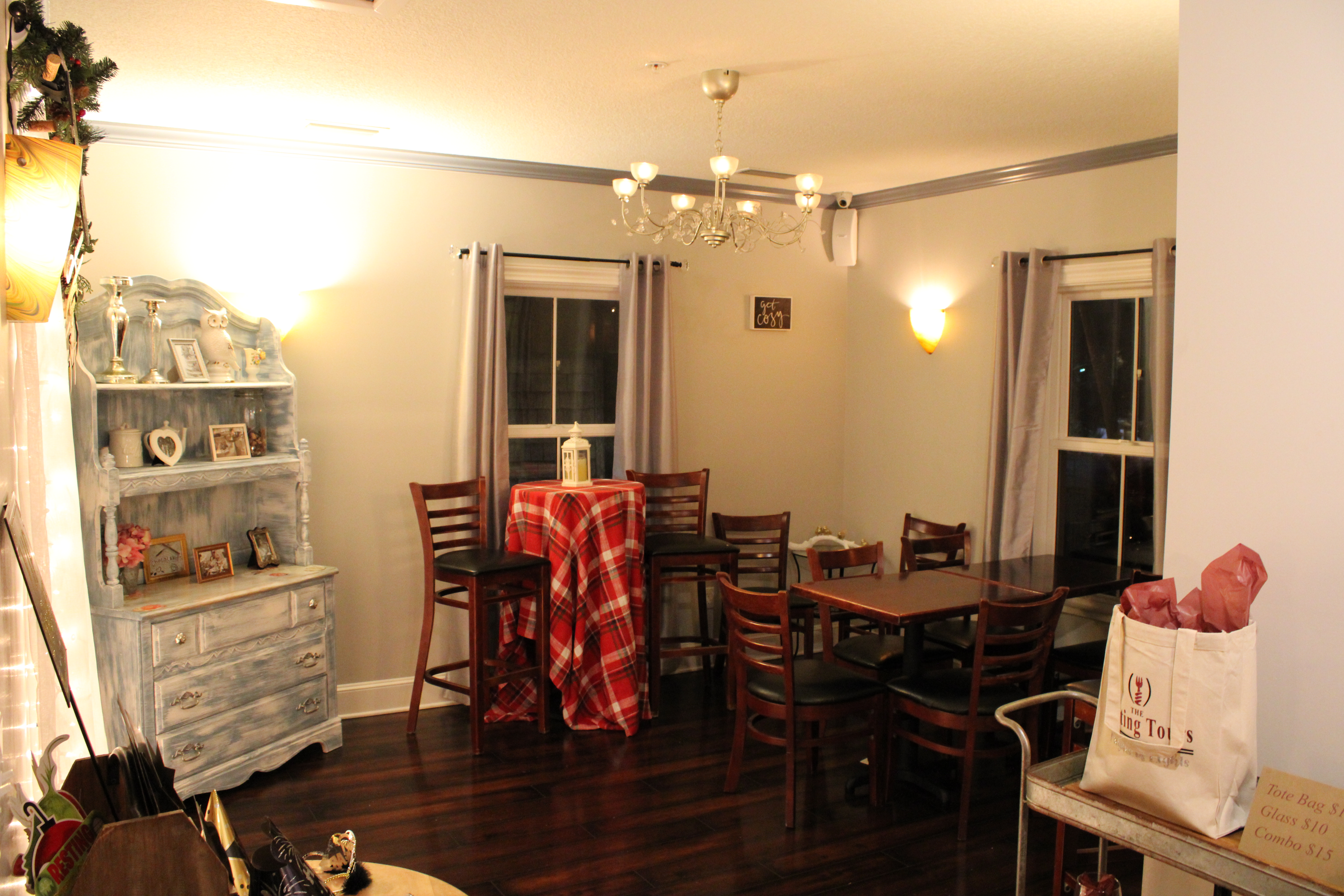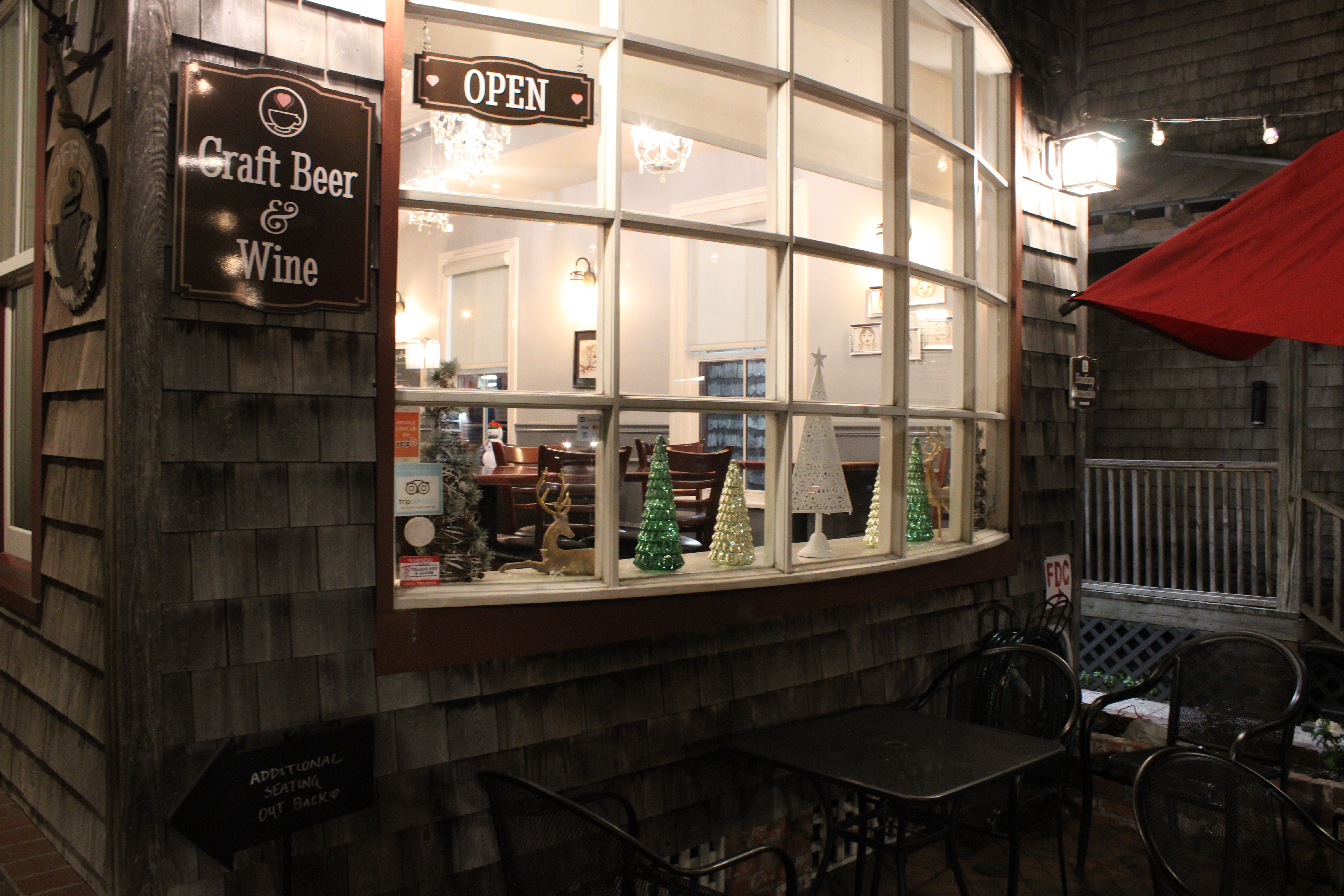 As mentioned above, the local shops create a magical atmosphere for guests by doing more than just window decorations. Locals create special events and packages that they host or hold a partnership with different tour groups. For example, one of the local cafes called ChocoLattes has a hidden outdoor back patio and a private room on the second level available for private groups to reserve. This is especially great for the holidays as groups, families, and companies tour the city’s beautiful Christmas lights. This past holiday season, the upstairs room was rented to the Tasting Tours. Nikki, the owner of the Tasting Tours, explained that visitors can purchase their wine and carriage ride package. ChocoLattes serves as the meeting location where guests check in on the upper level and take a tour around the city at their designated time. Guests that wait for their time can choose to order sweets and beverages on the lower level if they want but it’s not part of the package. Once it’s time for their carriage ride, the wine-goers load in a beautifully lit carriage across the street at the Grace United Methodist Church, and the tour begins!