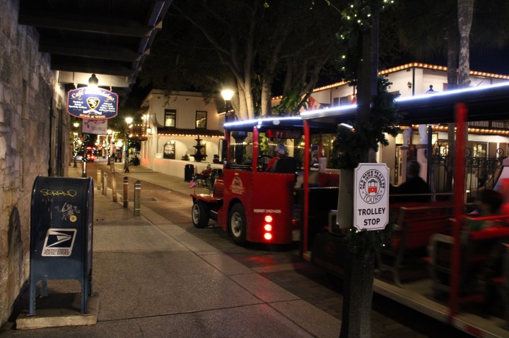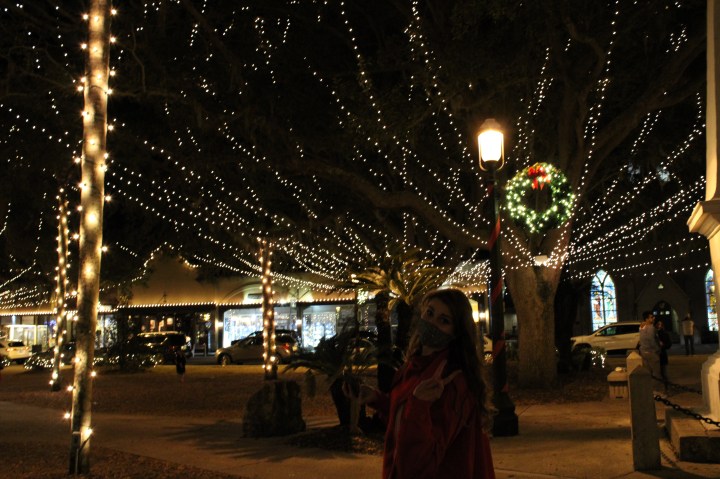 As its popularity grows, so does the backed-up city traffic, bustling masked crowds, and an immense amount of holiday music. Tourists and locals are accustomed to waiting for hours to find a parking spot in the public ramp or along the narrow stone streets as the holidays approach. With over 6 million visitors a year, many businesses thrive in the tourism industry but the businesses with the most success are the ones that capitalize on Nights of Lights. This year was no different from previous years despite the pandemic. Crowds walked through the city with phones and hot chocolates in hand visiting restaurants, cafes, boutiques, antique shops, and other local trades. The lights are accessible on foot and the sidewalks allow people to take their time with photos while enjoying the glowing ambiance but the jolliest way to see the sites is to take the Old Town Trolley’s Nights of Lights Tour. This year, they are taking preventative measures for guests wanting to ride the joyful Christmas ride such as wiping down trolleys after every ride, installing plexiglass barriers between seats, and limiting contact with large crowds through online reservations. Ticket holders get to sing along with Christmas jingles, see historic sites, and learn about St. Augustine’s history through a festive narration from the trolley hosts.