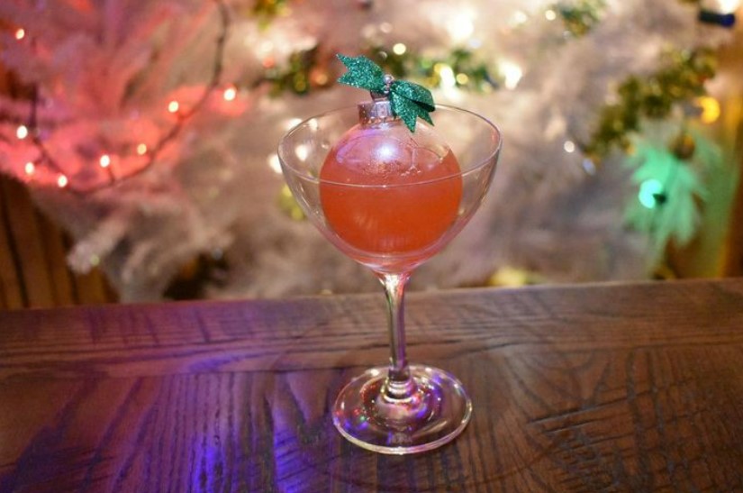 a booze-filled jingle ball. Flavors of strawberry, lychee, lime, and pineapple.