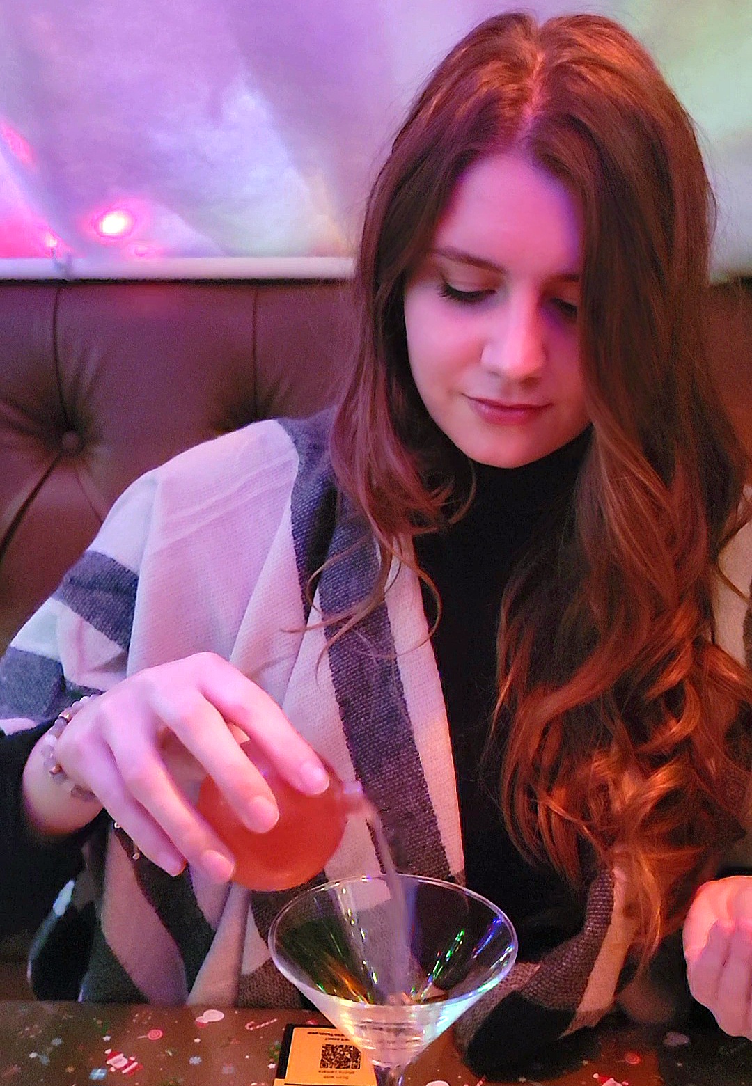 We made our way through the bustling maze and found our table in a gingerbread village with other booths. After getting comfortable in our gingerbread booth, we found the operations behind the scenes to be as seamless as the check-in process. This lounge isn’t your typical bar. When looking at the aisles, you could see servers removing dishes and placing orders on tables but there wasn’t anyone taking the orders. Instead, the establishment decided to use modern technology to take out the middleman. With QR codes on every table, guests simply open their own tabs and order on their phones as frequently as they want. Once the order is ready, staff bring it to the table. To pay your bill at the end of the 90 minutes, simply use your phone to close out the tab–please don’t forget to tip!