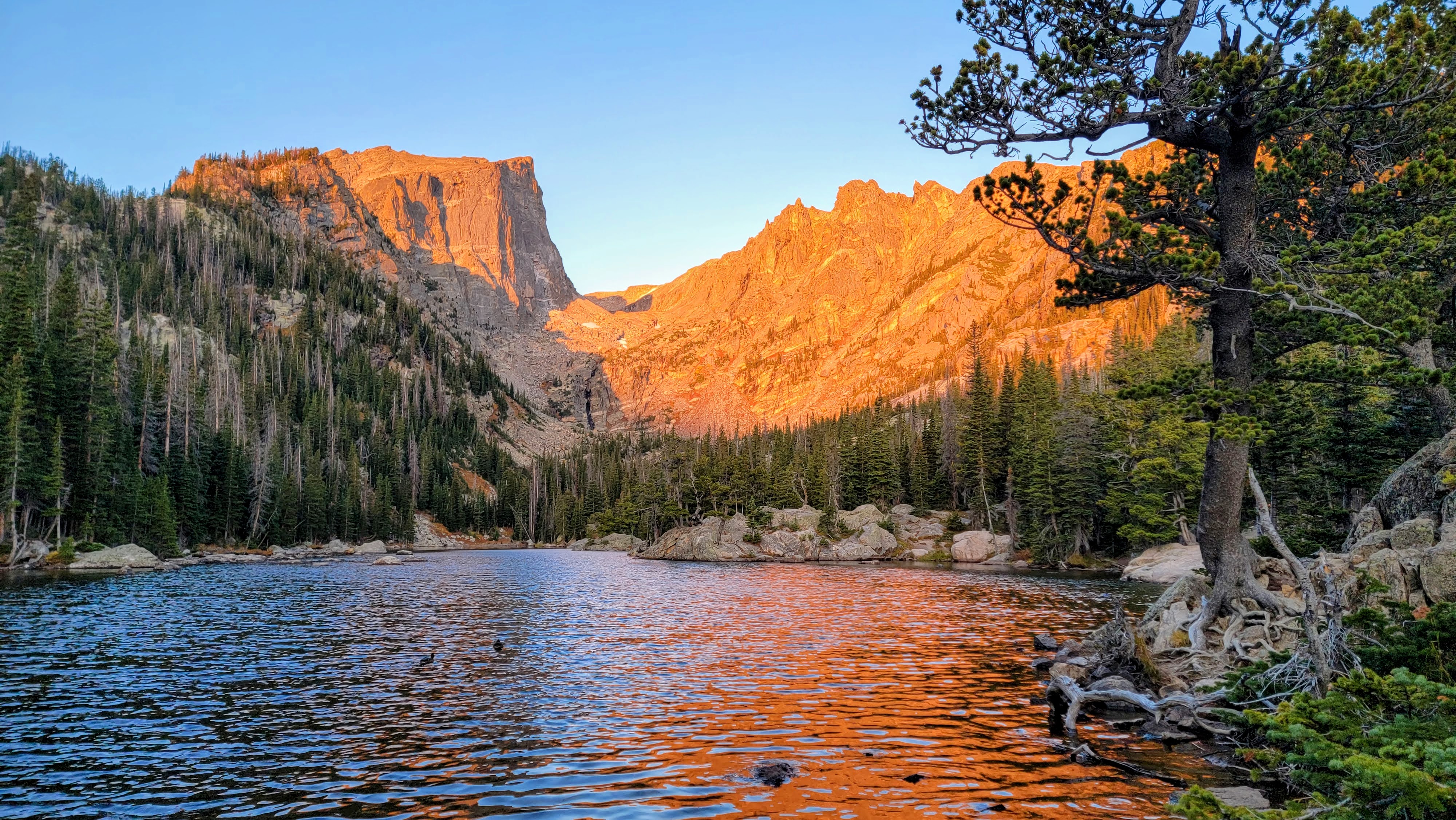 Three days after our departure from Minnesota, we arrived at the Bear Lake trailhead in the darkness of early morning, around 5:15 a.m. The crisp, cold air awakened my still-groggy senses as I gathered my hiking gear, straightened my thermal layers, and mentally prepared for the long hike. Five miles may not seem long to avid hikers, but for someone who was still adjusting to the elevation, it was bound to be a thrilling and exhausting trek. With the light from our headlamps being our only guide, we began our ascent. The forest wrapped around us in quietude barr the elk noises we heard above us on the cliffside. Other than the wind in the trees and animals skittering in the dark, we were alone. We moved slowly, adjusting to the altitude with steady breaths and an easy pace.